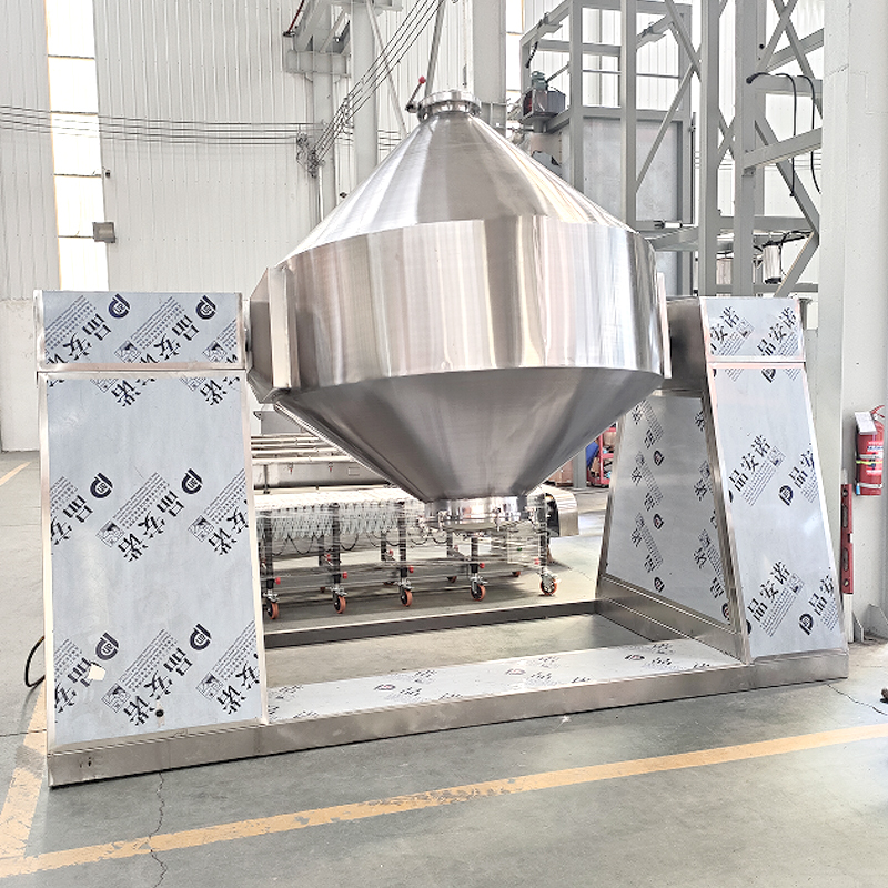 ダブルコーンミキサーは,製薬,化学,その他の産業で使用される粉末ミキサー機器である.中央軸で結びついている対称的な円形殻から構成され",二重円形"の形状を形成する動作中に,モーターはシリンダーを水平軸の周りを回らせます.重力と遠心力の影響下では,材料が落ちて広がり,均質な混合を達成します.混合効率が高い低残留,強い適応性,粘着を減らすために内壁が磨かれている.いくつかのモデルは真空システムで装備され,乾燥粉末,粒子を混合するのに適しています.