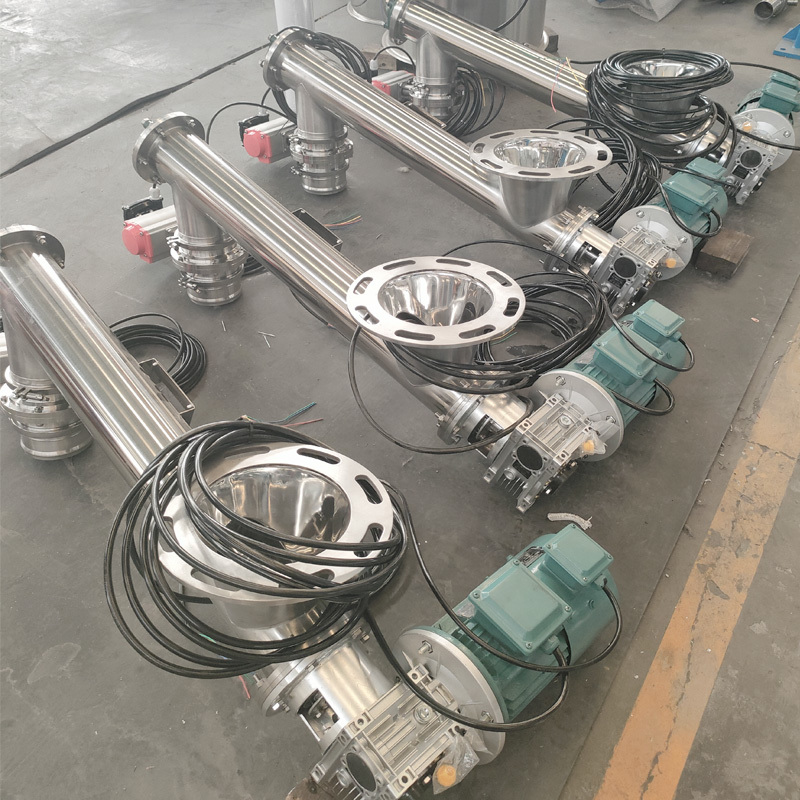 2.3出口を持つ水平スクリューコンベア,各出口は蝶弁を装備します,あなたが散装袋を満たす必要があるとき,ちょうど蝶弁を開きます