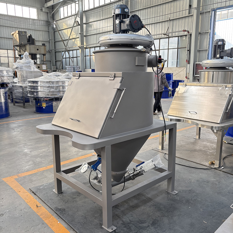 The dust-free feeding station is a specialized equipment designed for the food and chemical industries, aiming to address the dust pollution issue during manual feeding. Its core working principle is to create a stable negative pressure in the feeding chamber through an internal fan, effectively capturing the dust generated during the dumping of materials and sending it to the internal dust removal system for purification. The dust is intercepted and recycled by the filter, and the purified air is then discharged, thereby achieving dust-free operations at the source and ensuring a clean environment and employee health.